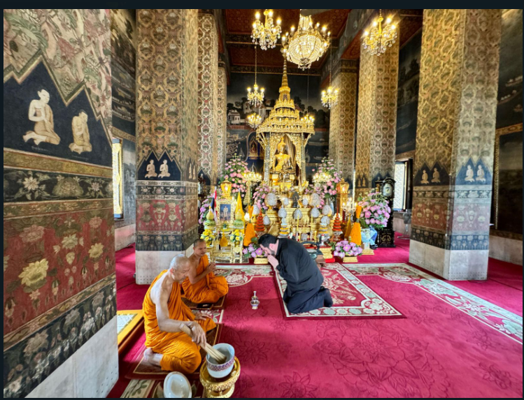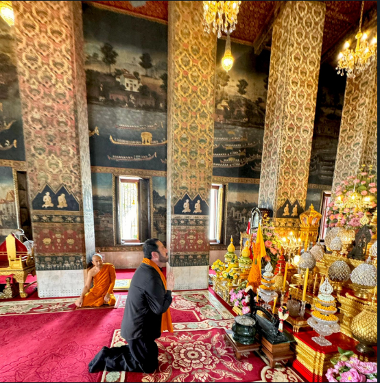 Evandro Hazzy, presidente do Miss Grand Brasil e reconhecido entre os três melhores diretores no Miss Grand International, foi recebido no templo Wat Pathum Wanaram, um dos mais reverenciados de Bangkok, Tailândia. A visita teve como principal objetivo um encontro especial com os monges Sumon e Sakun, que conduziram Hazzy em um ritual budista de equilíbrio do corpo e da alma.