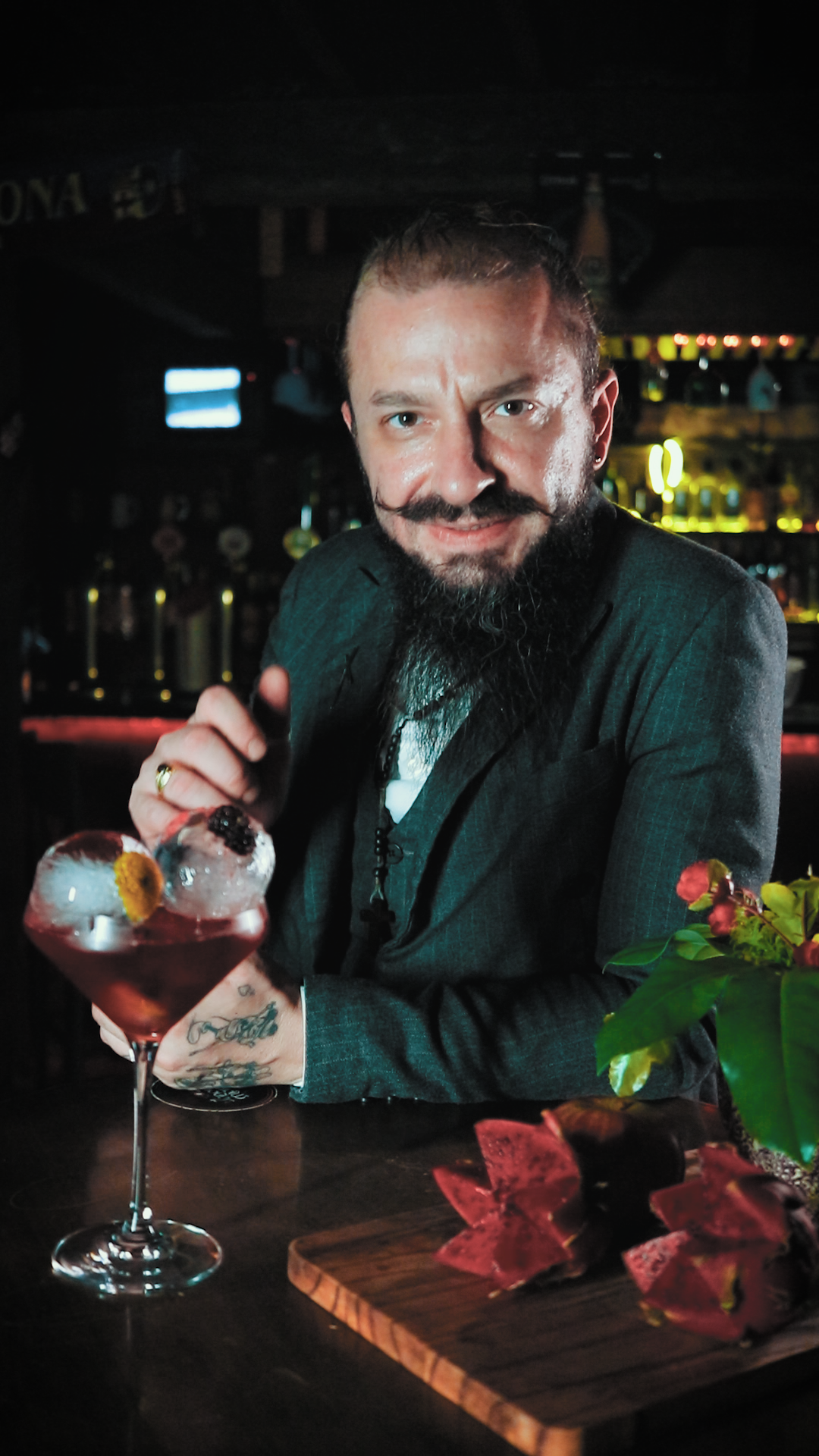 foto: Dom Marom com um de seus drinks sofisticados